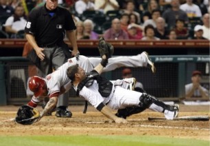La mala nueva proviene de la colisión en el plato que sufrió el careta venezolano Humberto Quintero, quien tuvo que ser asistido para salir del terreno de uego. Un choque con el antesalista de los Diamondbacks de Arizona Ryan Robert fue el causante de un fuerte dolor y que provocó la intervención de los médicos. Habrá que esperar los resultados de los distintos exámenes que seguramente se le practicarán al nativo de Maracaibo.